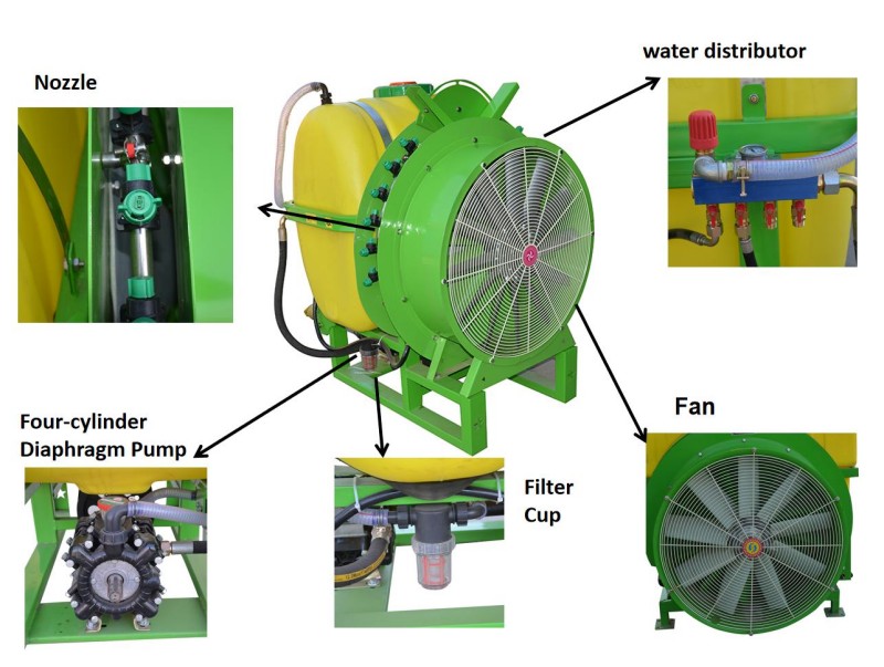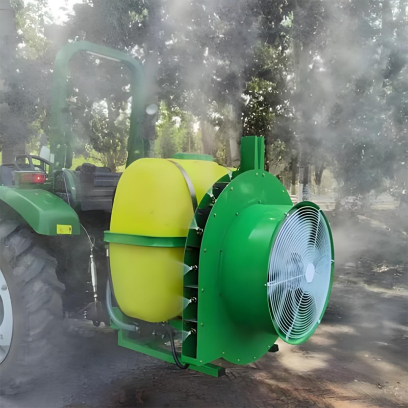 O pulverizador de jardim montado é uma grande máquina adequada para pulverizar pesticidas em grandes pomares. Tem as vantagens de boa qualidade de spray, baixo uso de pesticidas, baixo uso da água e alta eficiência de produção. Além disso, ele não depende apenas da pressão da bomba líquida para atomizar o medicamento líquido, mas depende do ventilador para gerar um forte fluxo de ar para explodir as gotículas em várias partes das árvores frutíferas. O fluxo de ar de alta velocidade do ventilador ajuda as gotículas a penetrar nos densos galhos e folhas das árvores frutíferas e também faz com que as folhas girem, o que aumenta a taxa de adesão do medicamento líquido sem danificar os galhos das árvores frutíferas ou das frutas.