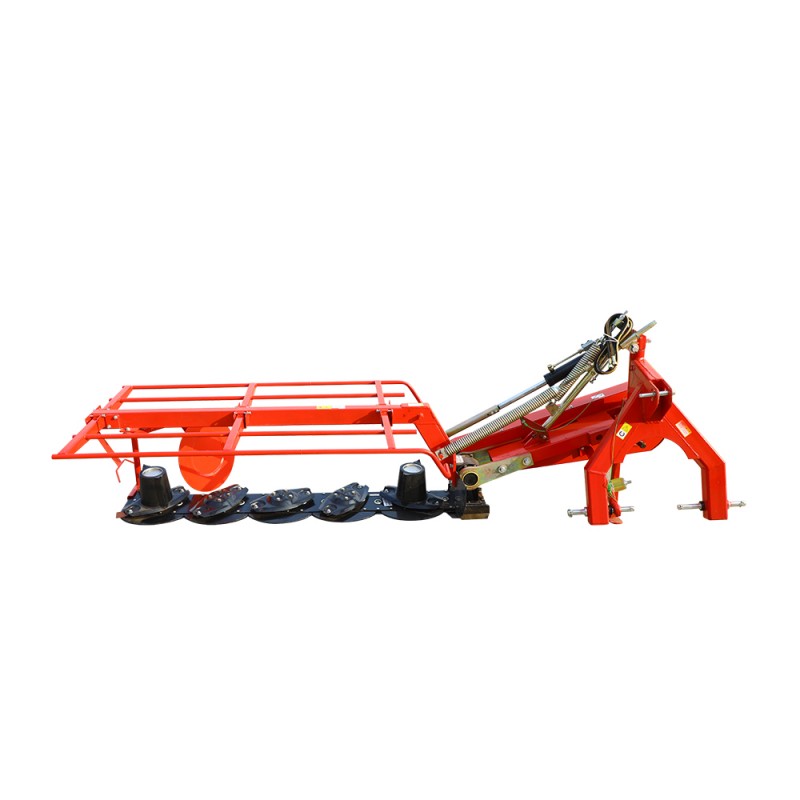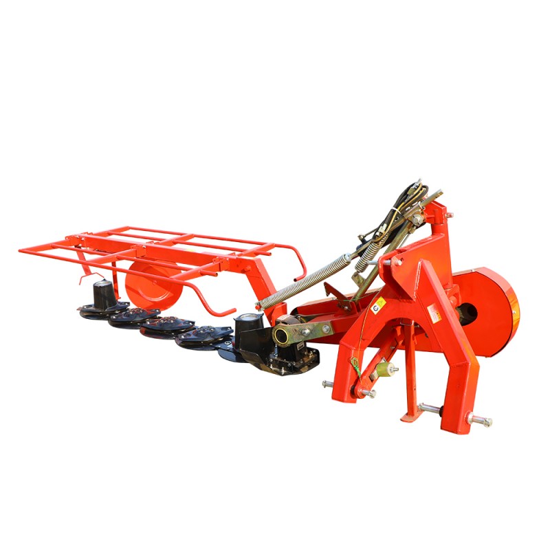 A parte mais importante de um cortador de feno rotativo é o componente de corte, que consiste em vários discos rotativos equipados com lâminas afiadas. A força centrífuga gerada pela rotação rápida faz com que as lâminas se estendam para fora, permitindo que eles cortassem a grama com precisão. Esse design garante um corte limpo sem rasgar ou danificar a planta, essencial para promover o crescimento saudável e manter a qualidade do feno. Em relação ao sistema de acionamento de energia, o cortador de feno rotativo produzido por nossa empresa é projetado para usar um eixo de PTO conectado ao trator para concluir a transmissão de energia. A moldura do cortador de imparcialmente é geralmente feita de materiais duráveis, como aço de alta resistência, para uma vida útil mais longa.